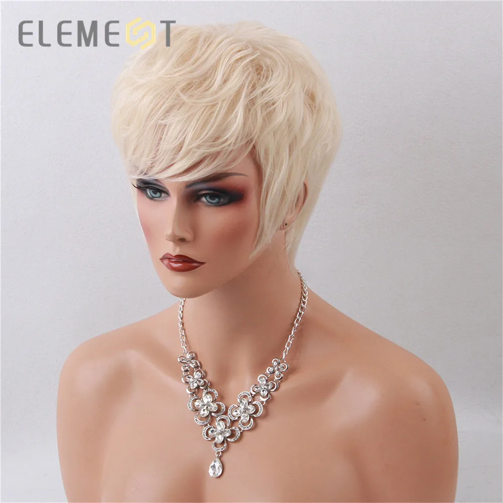 Element 6 inch Short Synthetic Wig Blend 50% Human Hair Soft Smooth Heat Resistant Pixie Cut Hair W
