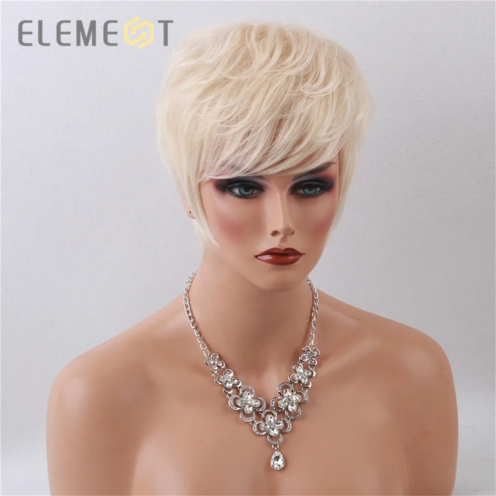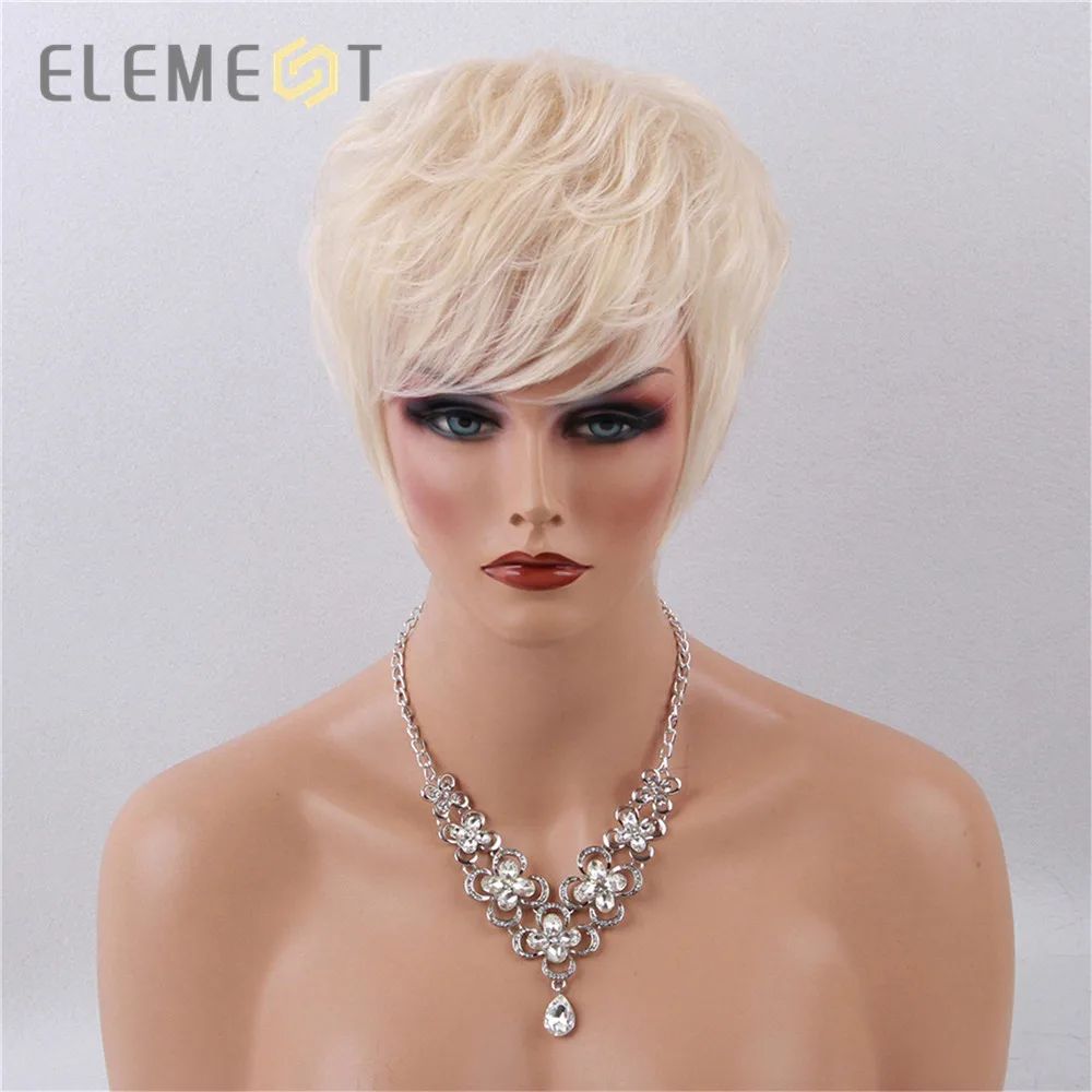Best Element 6 inch Short Synthetic Wig Blend 50% Human Hair Soft Smooth Heat Resistant Pixie Cut Hair W