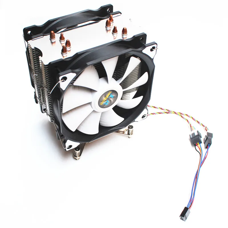 ORIGINAL LANSHUO CPU Silent Dual Fan 4 Heat Pipe 4 Wire Intelligent Temperature Control CPU Cooler Fan for I
