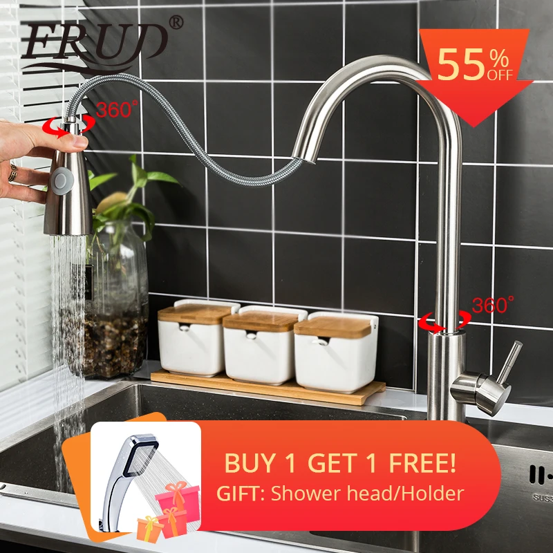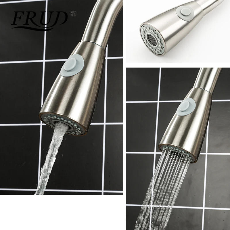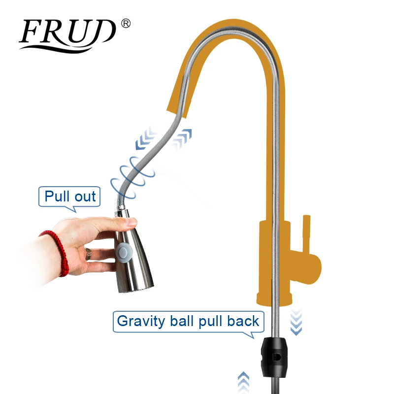 ORIGINAL FRUD Kitchen Faucets 304 stainless steel Silver Single Handle Pull Out Kitchen Tap Single Hole Hand
