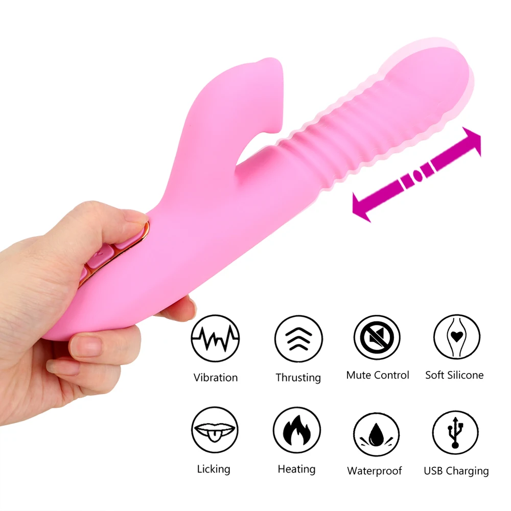 OLO Dildo Vibrator Heating Telescopic Rotating 7 Speed Tongue Licking Clitoral Stimulator G Spot Vi